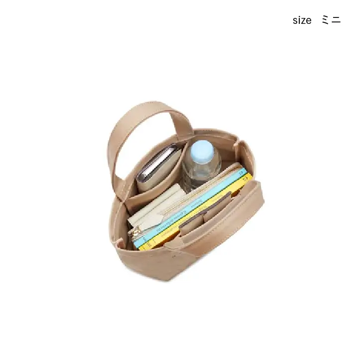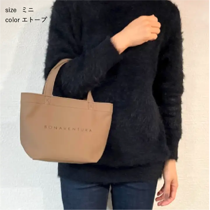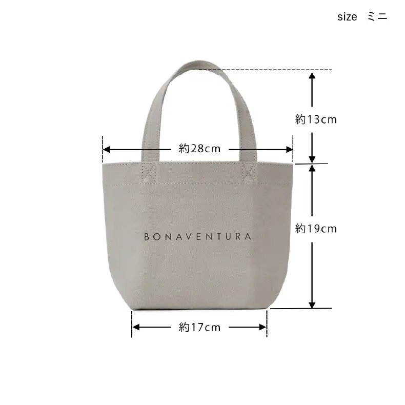 一番コンパクトなミニサイズ。手軽なランチトートとしてや、メインのバッグと合わせて持つサブバッグとしても大活躍です。