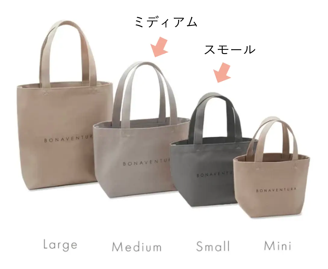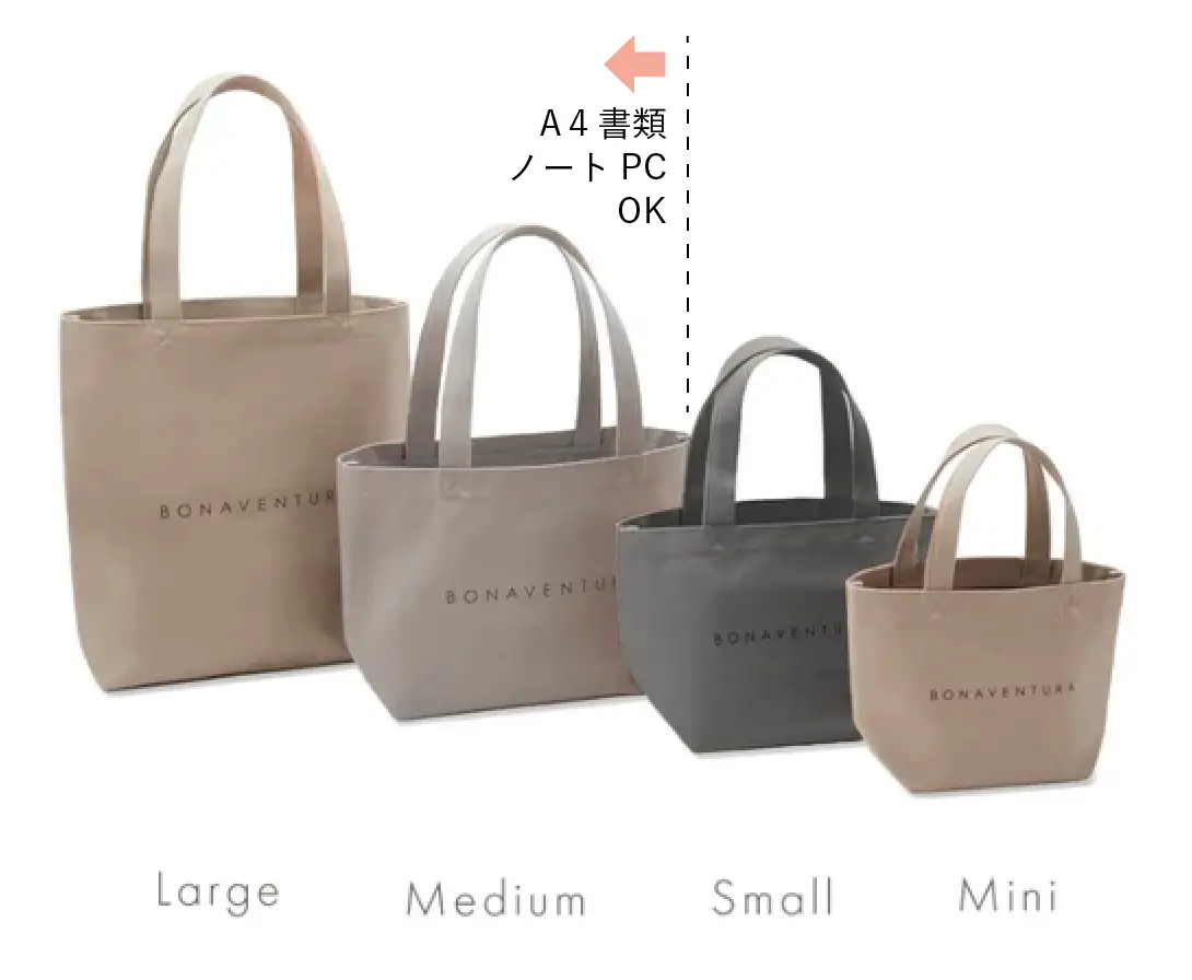 ボナベンチュラ「キャンバストートバッグ」全4サイズ感比較表