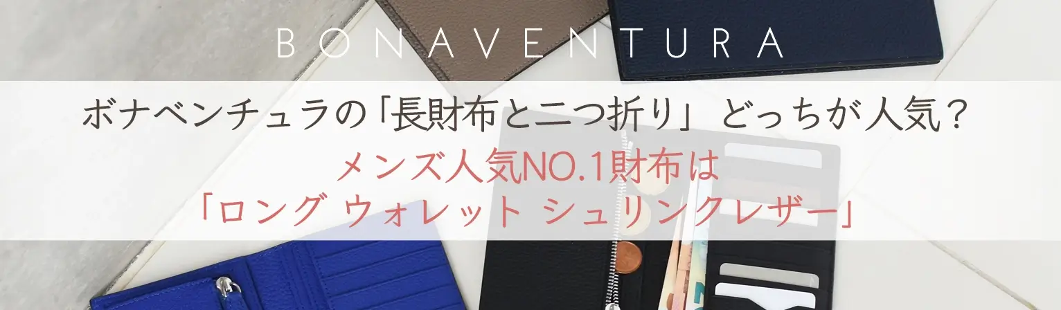 ボナベンチュラのメンズ財布、二つ折りか長財布で迷ったら、一番人気の「ロング ウォレット シュリンクレザー」を選んだら後悔しません♪