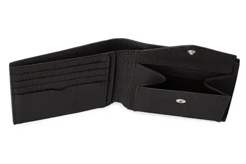 二つ折り財布って、小銭を入れるとパンパンに膨らんで不格好になりがちですよね。でも、これは口がガバッと大きく開くので、なんとコインを30枚入れても大丈夫なんです。