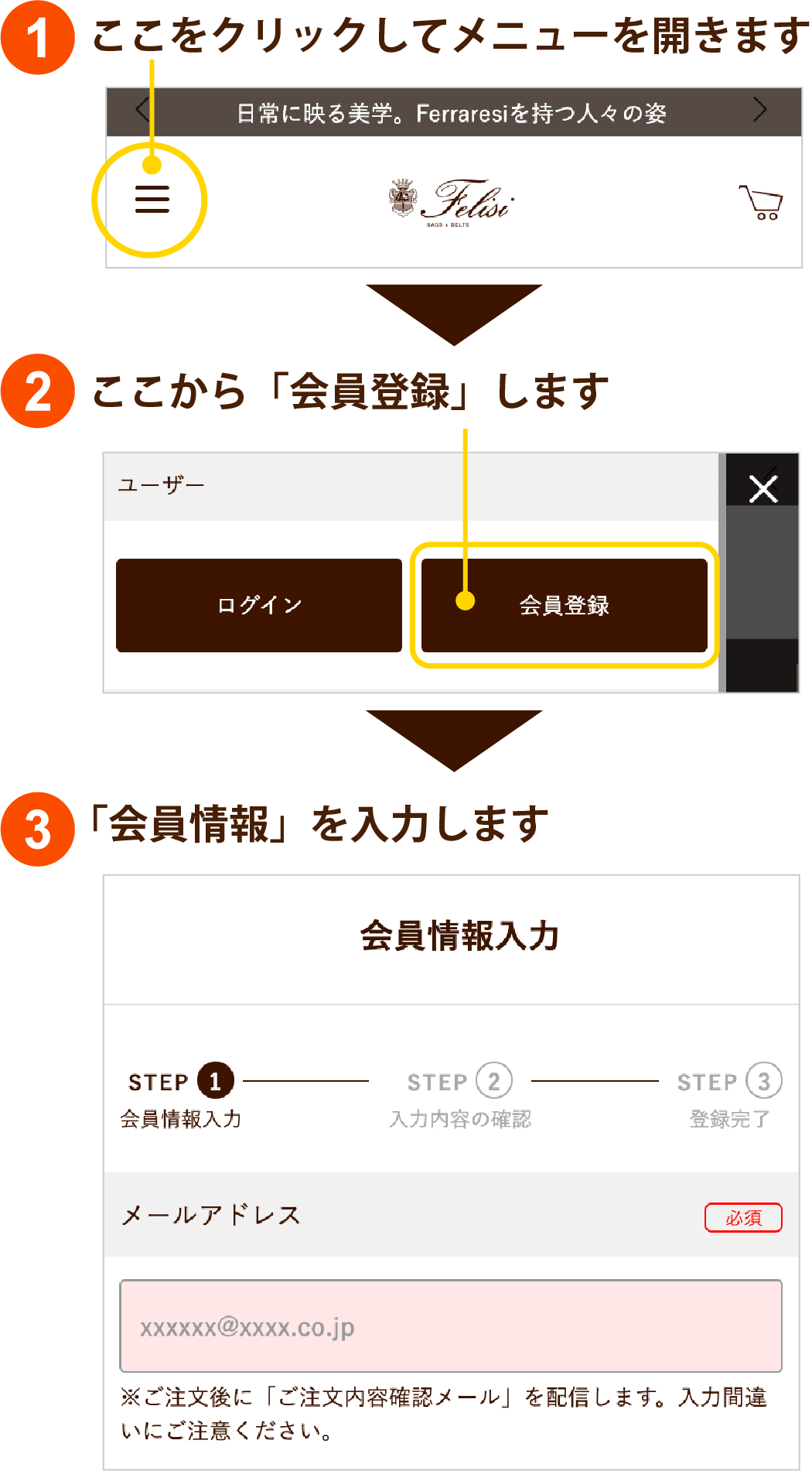 フェリージ公式サイトで会員登録する