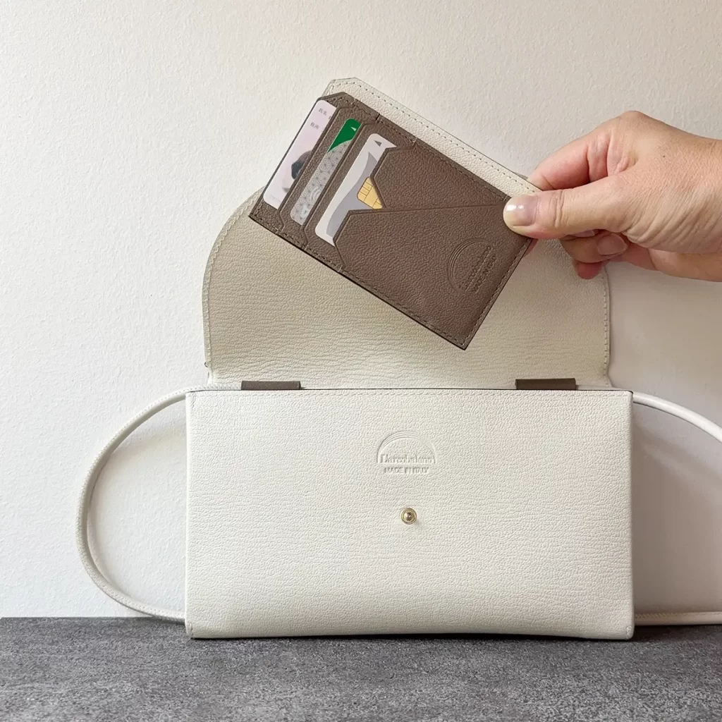 高級感のある上質なレザーで、ブランドロゴが主張しすぎない、シンプルなデザインが好きです。